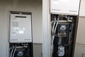 お客様へお修理した場合の費用の説明をさせていただきましたが、前回取付け後15年近く経過していたこともあり新しい給湯器への交換をご希望されました。