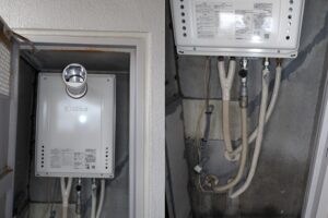 お伺いし設置状況の確認と不具合状況の点検を行いました。今回お湯が出ない状態が再現されイグナイターの故障でスパークせず点火しない状態でしたので、応急で代替部品の仮取付し交換までの間使用可能の状態に処置いたしました。