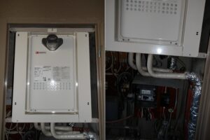 訪問し確認しますと、リレーが原因で浴槽サーミスタ回路の通信がおかしくなってエラー312が表示されていました。給湯器も9年目でしたのでお修理も可能でしたが、お客様のご希望で新しく交換して下さいとおっしゃられたので、交換させていただきました。