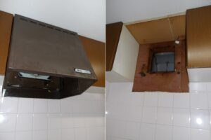 プロペラ換気扇から、スリム形ノンフィルターレンジフードへ