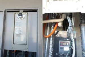 お伺いし確認するとメインの操作リモコンの運転ボタンが押しても反応が悪く、操作音だけ鳴ったり反応しなかったりする状態でした。2010年製の給湯器で15年使用されてましたのでお客様に新しくお取替えをおすすめさせていただきました。お客さまも15年も経ってるなら新しく交換でお願いしますとご注文をいただきました。