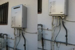 お伺いしますと、2008年製の大阪ガス24号ガス給湯器が設置されていました。家族も2人だけになったので小さめの給湯器でも大丈夫ですとおっしゃられたので、能力を20号におとしてリンナイ製の給湯器をおすすめさせていただき、ご注文となりました。