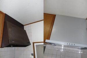 古くなり汚れたレンジフードとガラストップコンロの交換