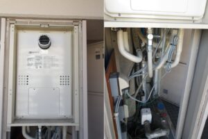 現地で確認いたしますと、大阪ガス製の高温差し湯タイプ温水暖房付き給湯器が設置されていました。同等品での交換をご希望されましたのでノーリツ製の給湯器でお見積りさせていただき、交換となりました。