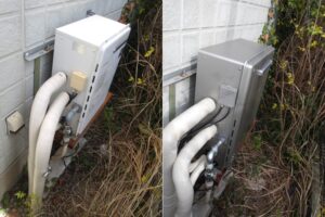 今回はお客さまより「給湯器の電源が入らなくなりました。外の給湯器の下が濡れていて、どこからか水漏れしているみたいです。見に来てください」とご連絡いただきました。