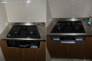 西宮市で止まらない換気扇と、古くなったビルトインコンロ交換