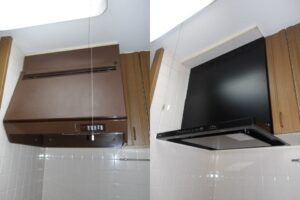 ノーリツスリム型ノンフィルターレンジフードとガラストップコンロミッケへ